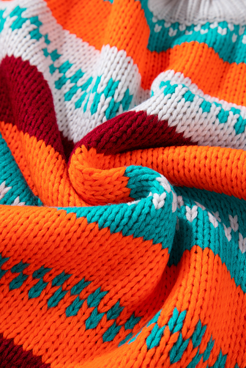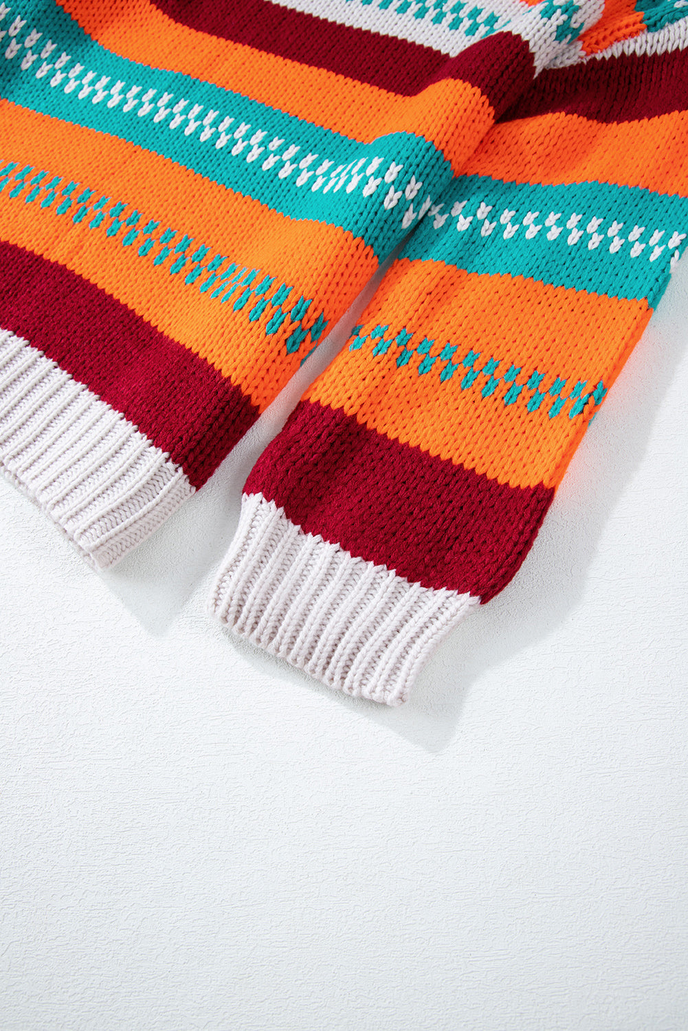 Contrast Striped Round Neck Long Sleeve Sweater