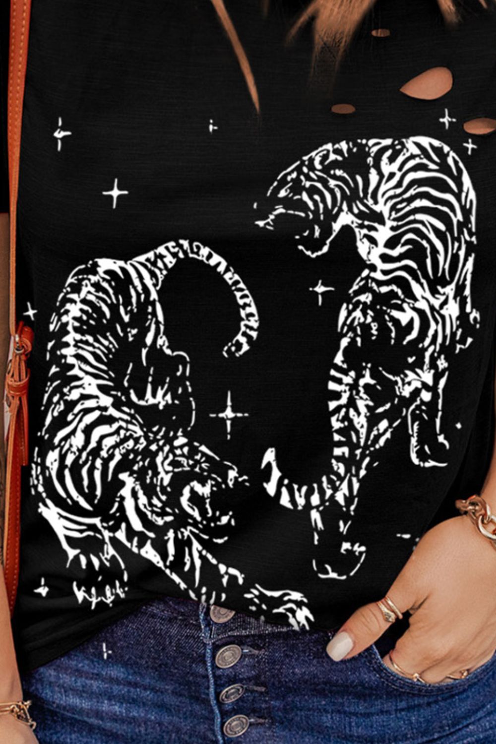 Cutout Graphic Round Neck Short Sleeve T-Shirt