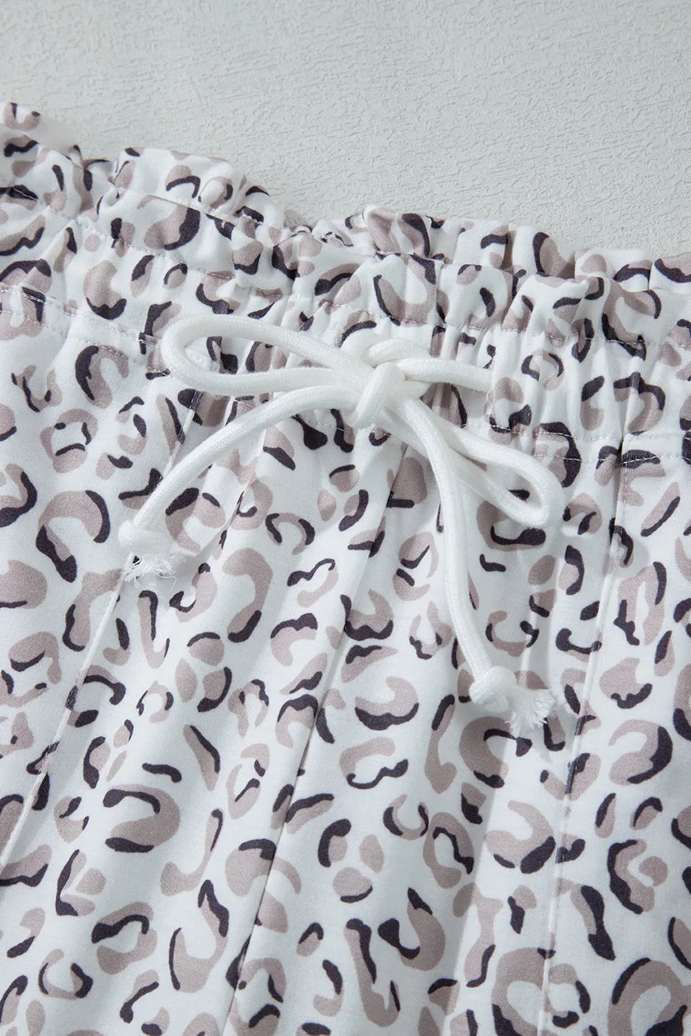 Drawstring Leopard Long Sleeve Hooded Top and Shorts Set