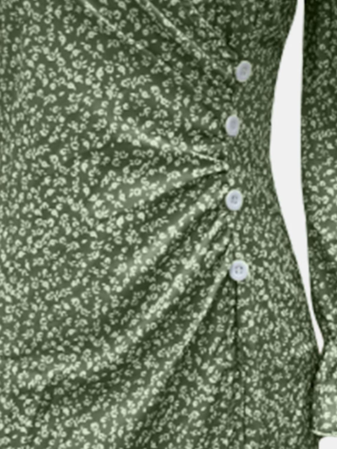 Full Size Printed Surplice Long Sleeve Midi Dress