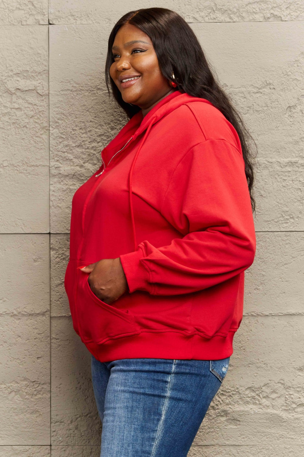 Full Size Zip Up Long Sleeve Hooded Jacket