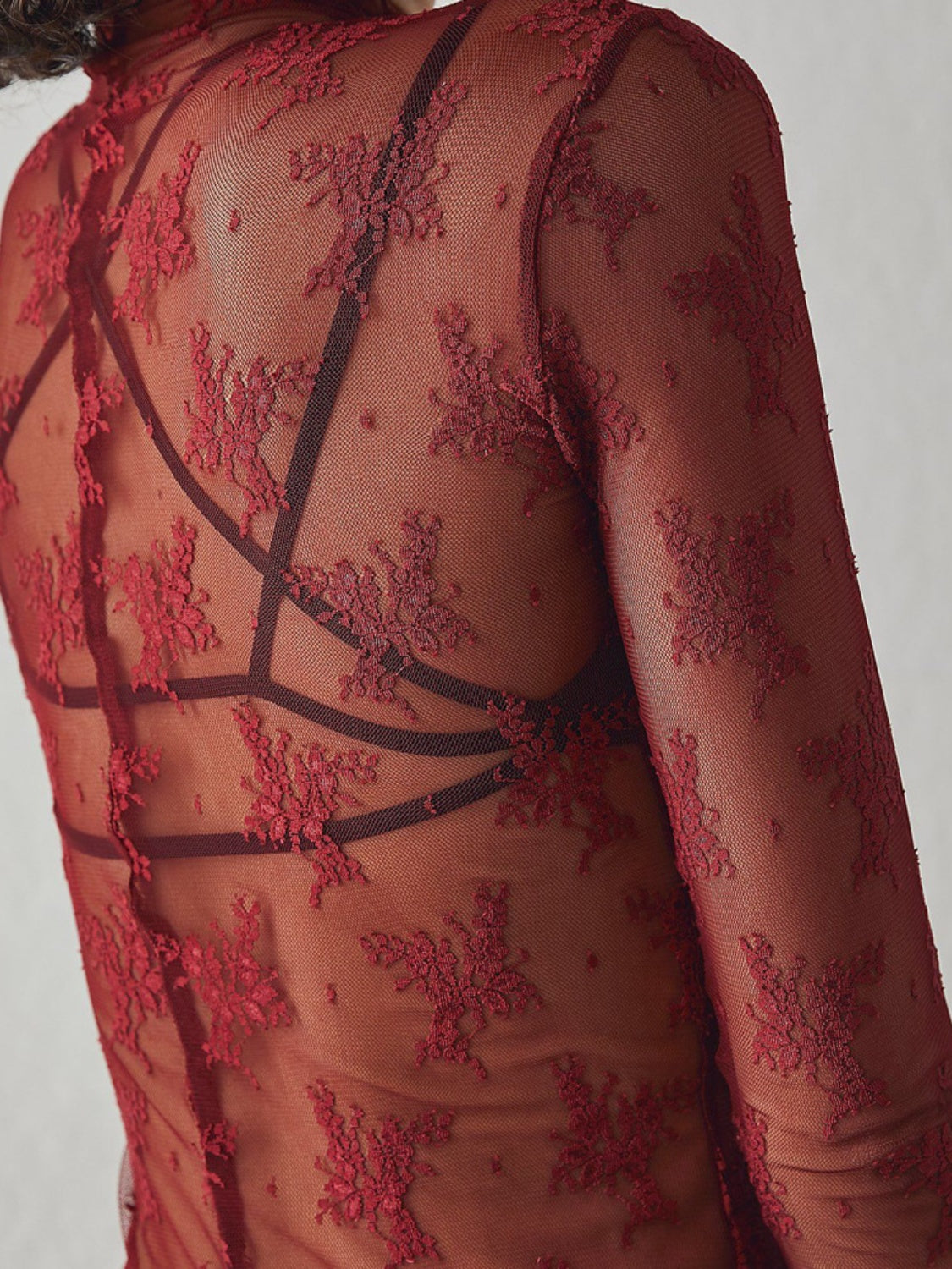 Lace Mock Neck Long Sleeve Blouse