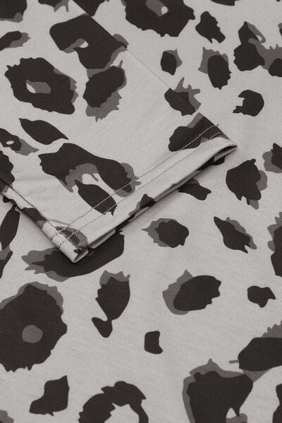 Leopard V-Neck Dropped Shoulder Blouse