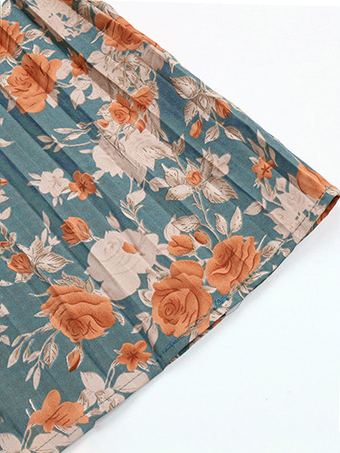 Perfee Tied Pleated Printed Mock Neck Long Sleeve Dress