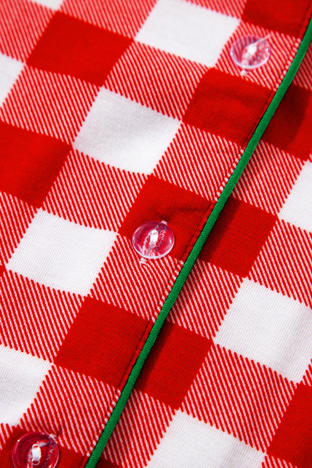 Plaid Collared Neck Long Sleeve Top and Pants Set