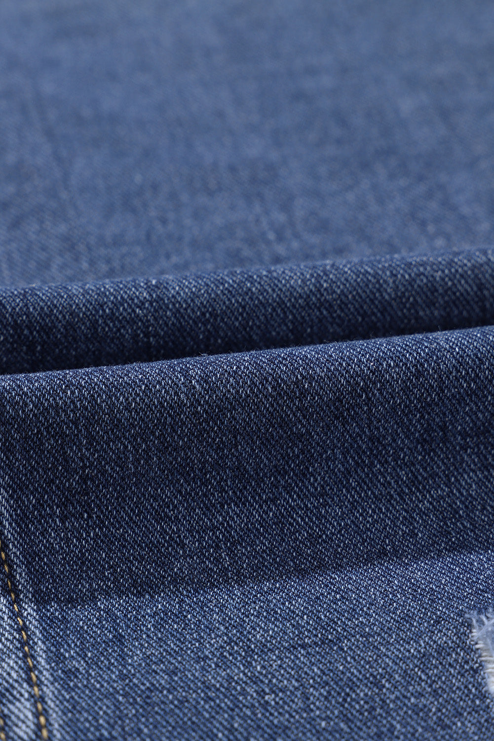 Plus Size Distressed Button Up Raw Hem Denim Jacket