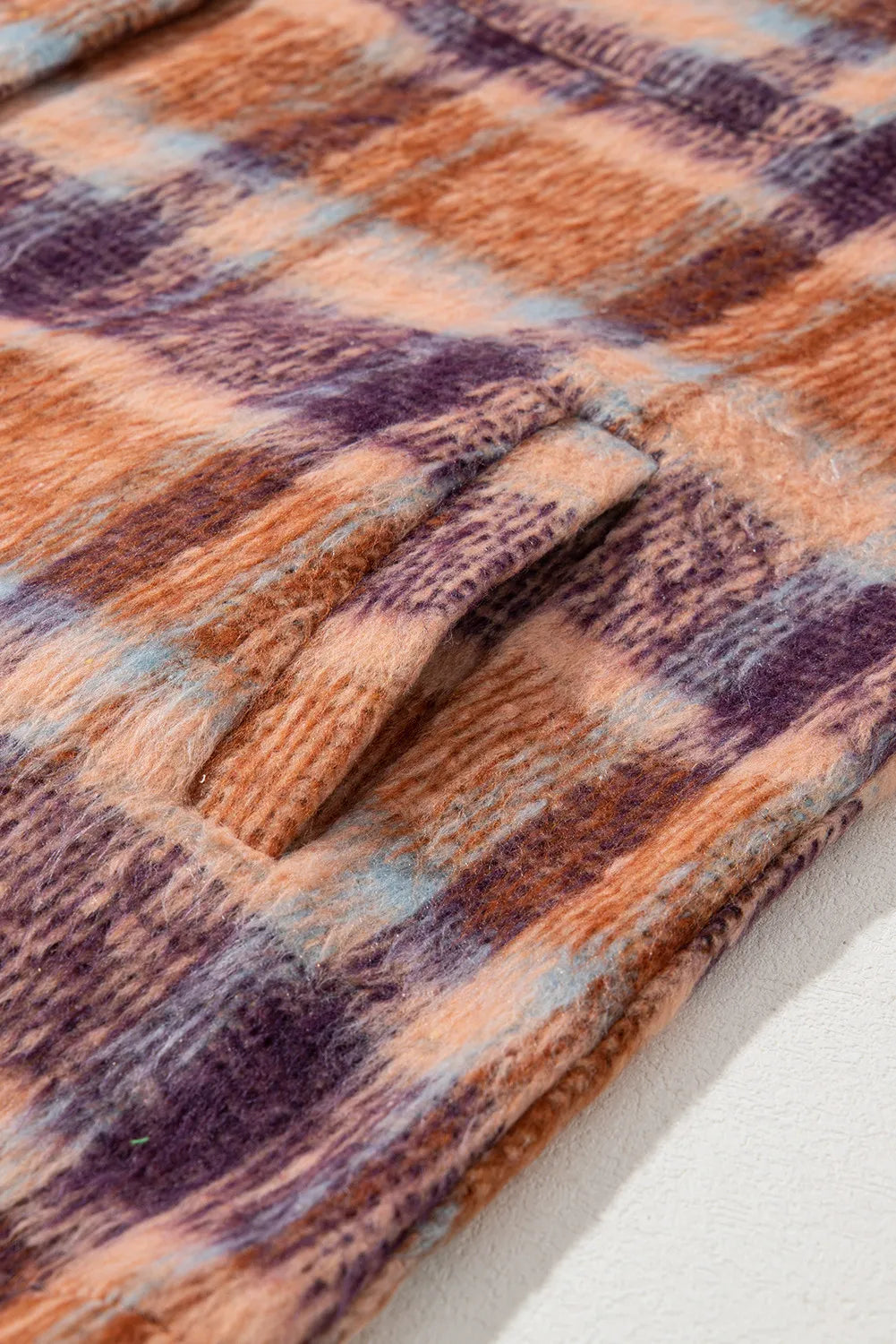 Plus Size Plaid Collared Neck Long Sleeve Jacket