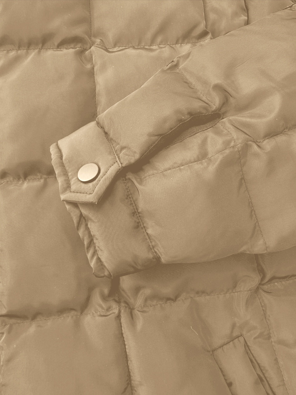 Pocketed Plaid Quilted Zip Up Winter Coat