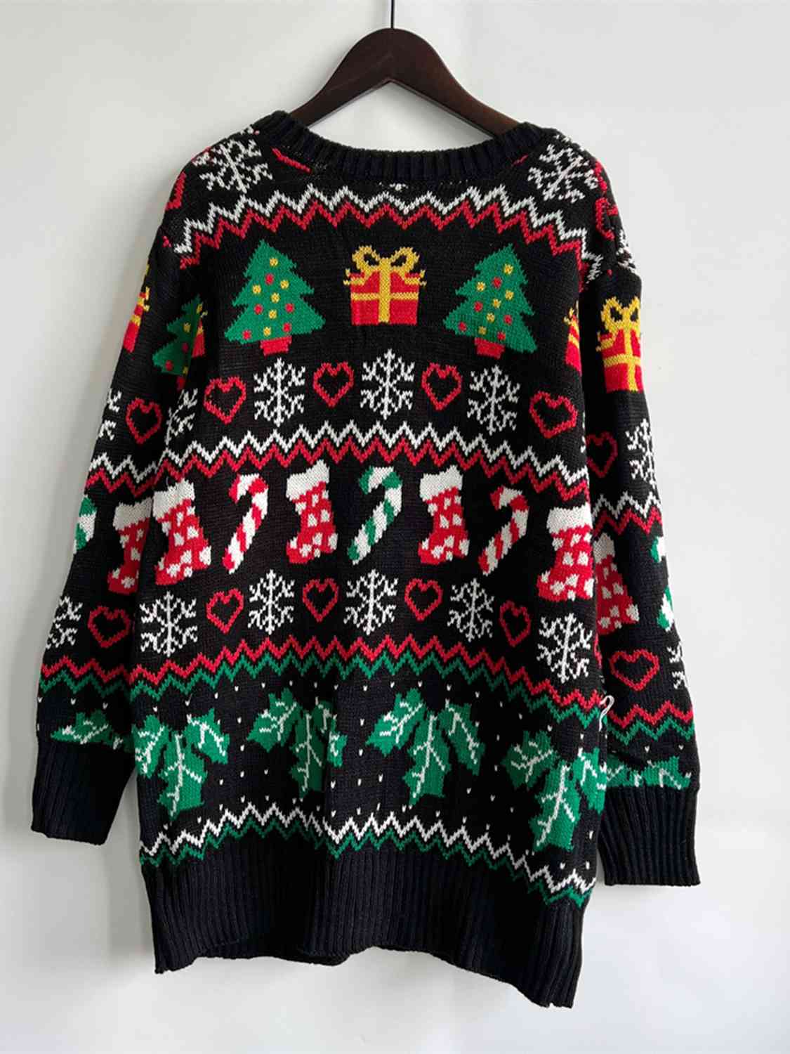 Printed Button Up V-Neck Long Sleeve Cardigan with Pockets