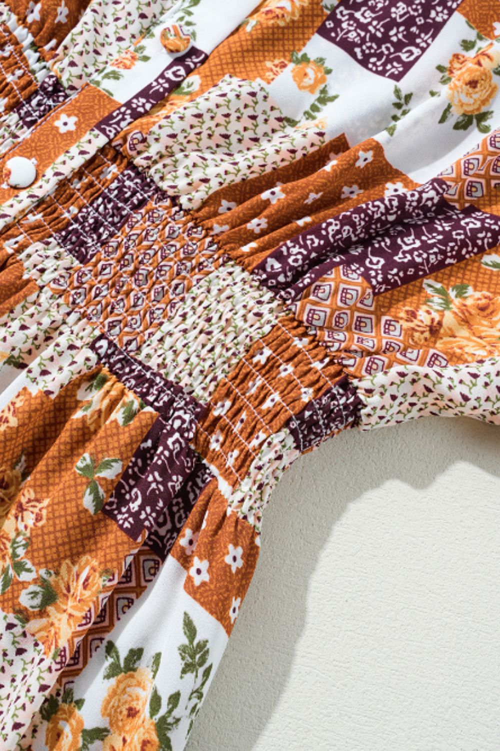 Printed Collared Neck Three-Quarter Sleeve Mini Shirt Dress