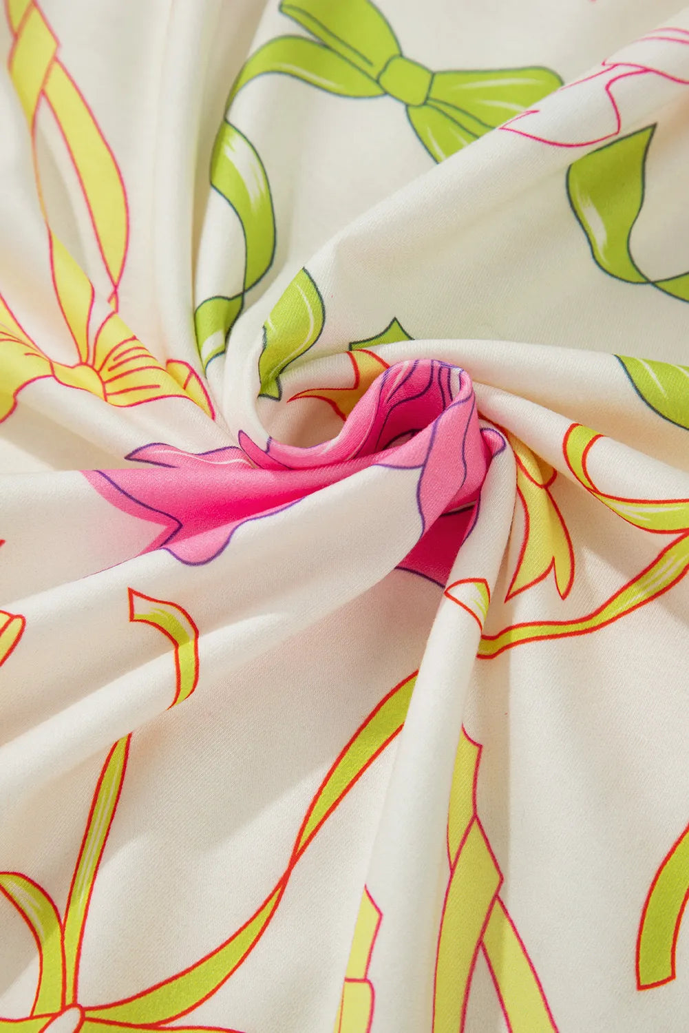 Printed Round Neck Long Sleeve Top and Shorts Set