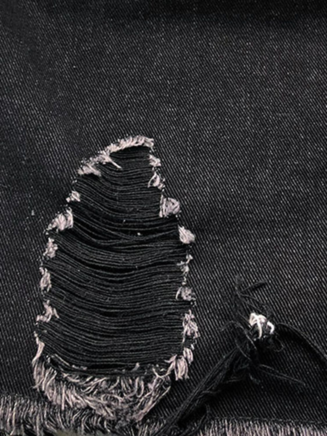 Raw Hem Collared Neck Long Sleeve Denim Jacket