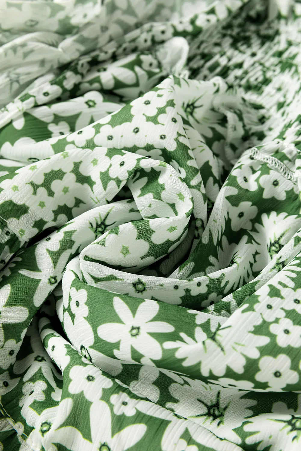 Ruffle Hem Floral Square Neck Long Sleeve Dress