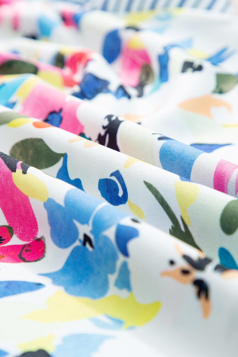 Ruffled Printed Mock Neck Cap Sleeve Blouse