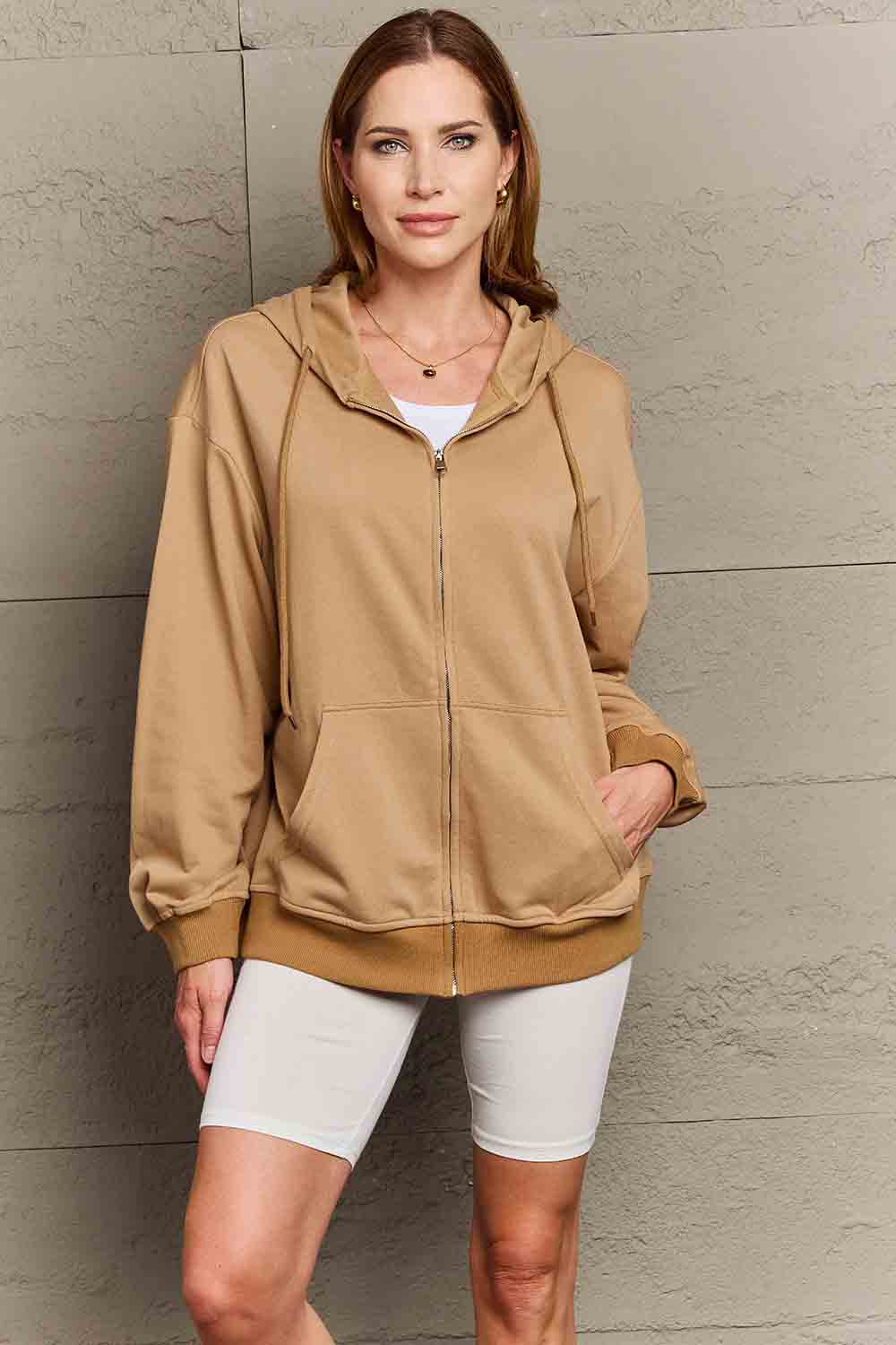 - Neckline: Hooded