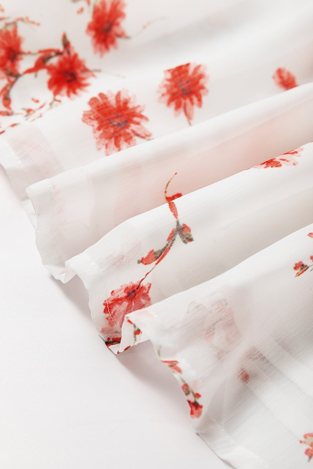 Smocked Floral Off-Shoulder Flounce Sleeve Blouse