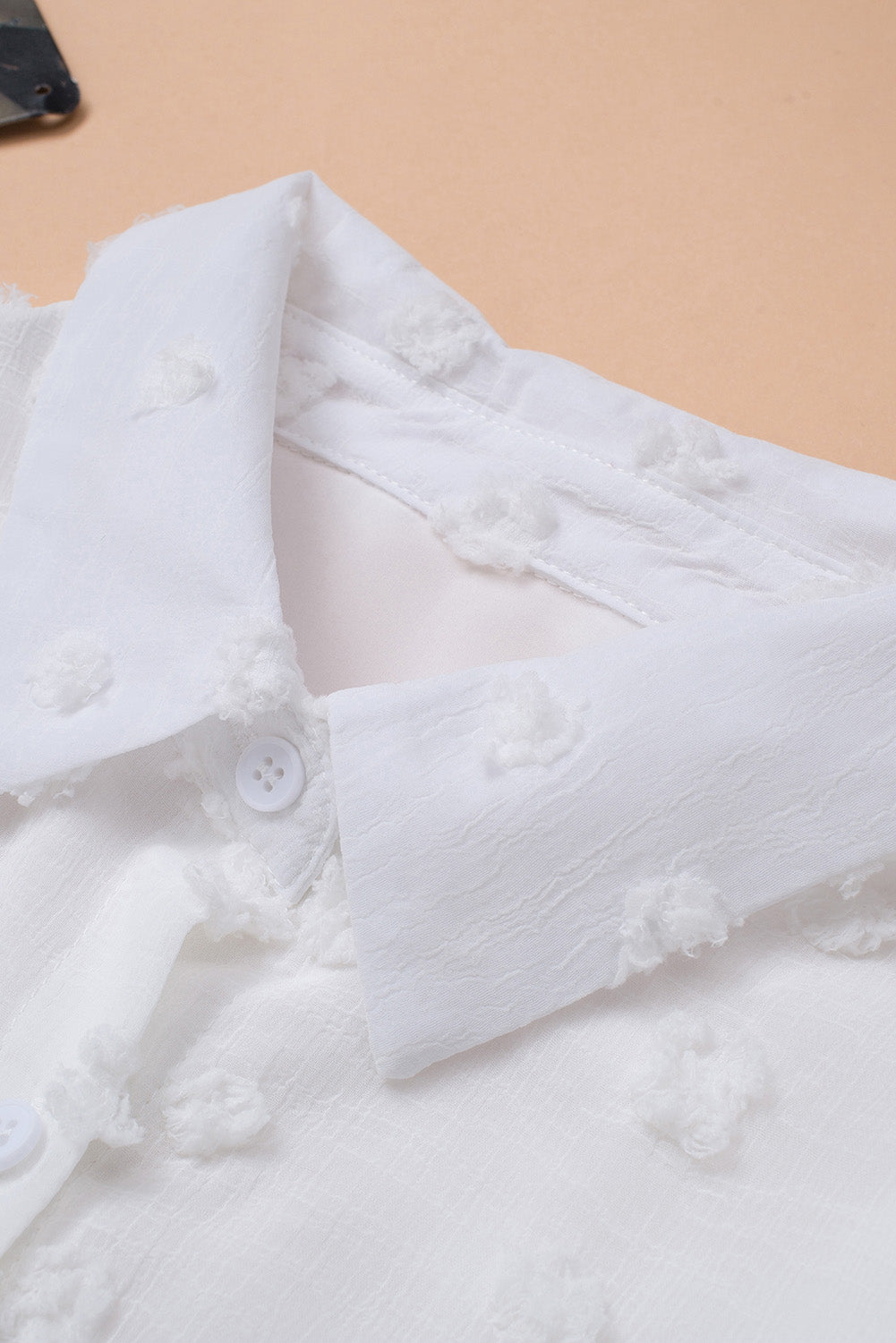 Swiss Dot Button Up Long Sleeve Shirt