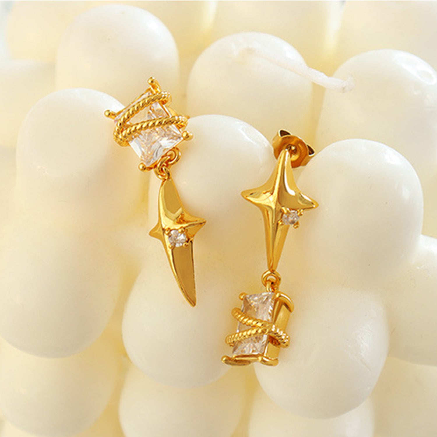 Zircon Copper Geometric Drop Earrings